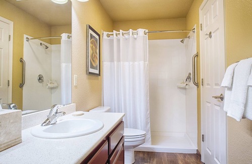 Penthouse - Two Bedroom - Special Needs Lower Floors: King in master, twins in second bedroom, queen murphy bed in living area. Special needs amenities include hand bars in showers and by toilet, lowered countertops and light switches, and wheelchair access under sinks. All special needs condos have flat entry from the car parking area.