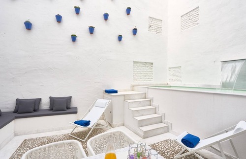 Duplex with living room with fully equipped kitchen, two large bedrooms with double beds, both with modern decoration. Its walls preserve the stories that over time have filled its rooms with magic. Popular stories that allow, together with its delicate decoration, to highlight the essence of a privileged space that overlooks the famous Murillo Gardens.Enjoying your patio with a private pool in the historic center of the city is quite an experience, contemplating the starry nights of Seville from your private patio decorated with tables, chairs and loungers.