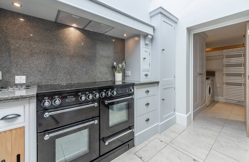 Upon entering the barn, guests are welcomed into the vaulted double height sitting room with exposed beams. On cooler days, snuggle around the wood burning stove on the comfy sofas and create special memories together. The adjacent dining area hosts six guests around the table. The big windows in this area cascade openness and light, whatever time of year you choose to visit. Stocked with everything you could need to cook any meal, the Bespoke hand-built painted kitchen features granite work surfaces and a breakfast bar. From here, bi-fold doors lead out to the fully enclosed garden. Conveniently located on the ground floor with an en suite shower room, double height bedroom two offers twin beds and benefits from a door to the courtyard garden. Upstairs on the first floor, and with garden views, the light and bright master bedroom hosts a king-size bed. For the ultimate in luxury, the en suite bathroom features a double ended bath with shower attachment. This gorgeous barn offers a good degree of privacy for two couples who want to holiday together. Outside, the barn the fully enclosed courtyard garden is surrounded by high fencing. Gather around the outdoor dining table and make the most of the sunshine in this lovely south facing space .