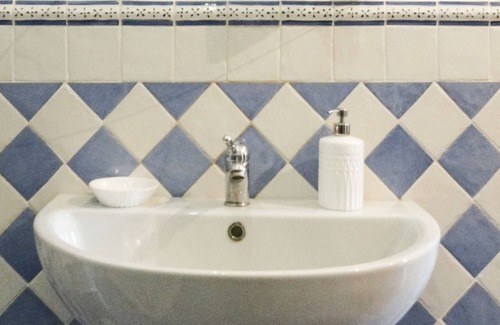 The comfortable facilities are one per room and reflect the colors of the rooms, one with a shower and the other with a bathtub.