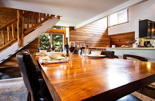 Planning meals at home or perhaps a private chef? The open kitchen is fully equipped with modern appliances and a large countertop that doubles up as a breakfast bar. There's an adjoining dining area for more formal meals round the table, or step outside for alfresco dining under Sun Valley's star-studded skies.