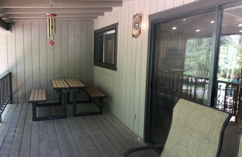 A beautiful 2,200sqft Cabin in the Pines. The property is on an acre with a trampoline, swing set, and huge playhouse. A large remodeled kitchen with 8 chairs around the island. There are 7 beds, in four bedrooms, and 2 sofa couches. Two full bathrooms. Comfy Bean bag and 2 lazy boy chairs. This cabin is all about being cozy and comfortable. We have a Huge 55inch smart Tv. The Patio swing/chairs/ and table our outside on the patio. The back yard is pretty much a forest. You will never want to leave!