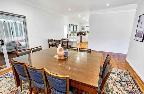 Pebblebrook is located in the rural hamlet of Millfield, which is a delightful drive via Mount View to the vineyards of Pokolbin and beyond. Perfect for a stay any time of the year, you'll enjoy a wood-burning fireplace in the main living area plus there's a second living area for extra room to relax. A seasonal fire pit outside plus a bubbly outdoor spa will melt away your stress; it's the perfect getaway for family groups or for friends in need of an escape from the bustle of city life. The home is delightfully decorated and has all you'll need for your next Hunter Valley adventure.