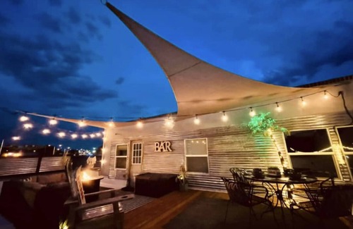 1 bedroom motorcycle themed apartment with city style roof top patio. Located above a motorcycle shop gives it that industrial feel. 3 min walk north is the best dispensary (Doobie Sisters) in town, 3 min walk to the south is the infamous Angles End Zone Sports Bar. Less than one mile to downtown Cortez with plenty of restaurants.
