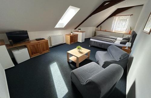 Penzion V Podzámčí offers accommodations in Moravská Třebová, 21 miles from Litomyšl Castle and 14 miles from Bouzov Castle. There's a sun terrace and guests can access free Wifi and free private parking. At the guest house, units are fitted with a wardrobe, a TV, a private bathroom, bed linen, and towels. At the guest house, all units are soundproof. The rooms are equipped with heating facilities. A selection of options including fresh pastries, fruit, and juice are available for the buffet breakfast. Sightseeing tours are available in the area. Guests at the guest house can enjoy cycling and hiking nearby, or make the most of the garden. Brno-Turany Airport is 51 miles from the property.