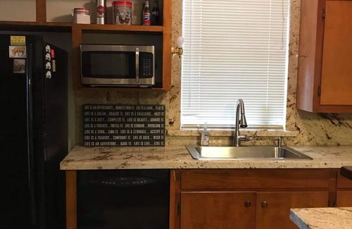 The remodeled 1900's home features new floors, a granite kitchen, large living and dining areas, includes a large master bedroom with a queen-sized bed, a large bathroom with soaking tub, separate shower and a large walk in closet. Spare bedroom has a full bed with a large walk-in shower. Washer and dryer are provided along with a smart TV and DVD player in the living room only.