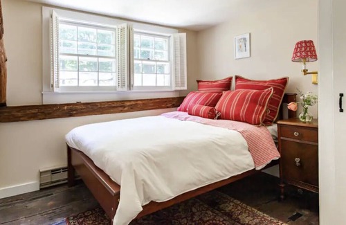 This designer/artist’s home has been beautifully restored with all the modern amenities, while retaining its historical nuanced character of when it was built in 1790. Modern art and sculpture juxtapose the classic farmhouse architecture. This 4 bedroom, 2 bathroom + additional Glamping Shed, have Helix hybrid mattresses in each bedroom with luxury bedding from Ralph Lauren and Brooklinen complimenting each bed.