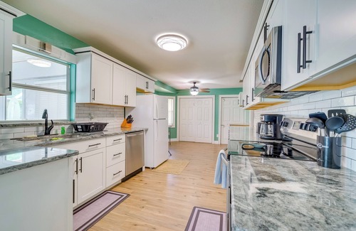 Your next Sunshine State retreat awaits at this 4-bedroom, 2-bath Ocala vacation rental! Featuring a spacious living area with a Smart TV, a well-equipped kitchen, and in-unit laundry, this home offers everything needed for a stress-free stay with family or friends. Sip your coffee from the lanai while the kids run around the backyard. Get outside and explore Ross Prairie State Forest or fish in the Rainbow River. When night falls, visit Ocala Downtown Square for shopping, dining, and more.