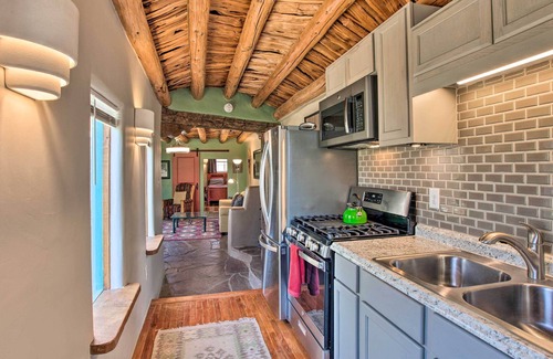Plan your next retreat to Taos, New Mexico and stay at this completely renovated 1-bedroom, 1-bathroom vacation rental home located less than 2 miles from The Downtown Taos Historic District and Taos Plaza. The unit features a fresh and funky Taosian style with all new finishes, appliances, and a large patio and backyard. Take a snooze in the hammock, whip up tasty snacks in the well-equipped kitchen to pair with refreshing cocktails on the patio, or curl up in the living room with a movie.