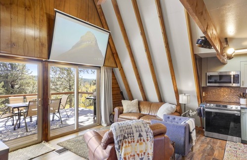 Welcome to "A-Frame of Pikes Peak", our little slice of mountain paradise. Built in 1968, this newly remodeled A-Frame home has everything you need for a relaxing getaway. Within a short drive, you'll find several attractions and outdoor adventures including hiking, fishing, rafting, and more. After a full day of activities, enjoy the relaxing hot tub with beautiful views of Pikes Peak, prepare a delicious meal in the fully stocked kitchen, play games or watch a movie on the big screen with the whole family! Our home features TWO king size beds, TVs in every bedroom, work-from-home standing/sitting desk with reliable internet. We hope you will love it here as much as we do!