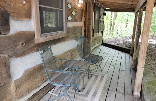 This 1840s log cabin is ideal for a family of four or a cozy couple's retreat. Tucked into a wooded hillside, Pine Grove Cabin offers a true home-away-from-home feel. Enjoy forest views from the four-seasons enclosed porch, cook in the fully equipped kitchen, and relax on the deck with seating and a propane grill. The cabin features two upstairs bedrooms with queen beds, a full bathroom with a tiled shower on the main floor, and a living room with a Smart TV for added comfort and entertainment.