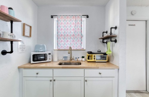 You’ll love the stylish decor of this charming place to stay. You will be close to everything at The Pineapple Shores Motel. The unit was recently fully renovated and includes an adorable kitchenette, 2 queen beds and a small futon that could sleep a child. Motel is located in Daytona Shores across from the beach and comes fully stocked. Enjoy quintessential Florida at this retro inn that is a throw back to the 50's when Daytona Beach hit the scene. Non-aggressive dogs allowed with pet fee.