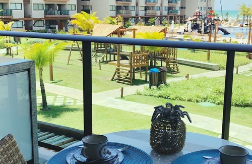 Beautiful apartment in the best stretch of Muro Alto beach. 73 m2. The flat is assembled to offer a high level of comfort. Every detail has been designed so that our guests can have a unique experience. Our flat overlooks the beach and pool. There are 2 bedrooms (1 suite), plus a bathroom, living room, kitchen, laundry area and balcony. Air conditioning in the rooms. 55 "TV in living room and 49" TV in suite, wardrobes in both bedrooms. Premium line of sheets and towels. Balcony furniture.