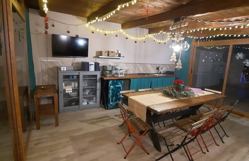 - large living room with comfortable double sofa bed with coffee table, 32 inch satellite and smart flat-screen wi-fi wall digital TV and under a beautiful piece of furniture, a fitted wall and a cot. Kitchen complete with hob, oven, sink, fridge with freezer, table and six chairs, equipped with Neapolitan coffee maker, kettle, cutlery, crockery, cups, cups, glasses etc. Double bedroom, bedside tables, chest of drawers and wardrobe, one of which has a flat screen TV and a window overlooking the garden.