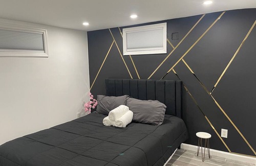 Guests have street parking which is always available and parking in a 1 car driveway (will need to manually open and close gate to access). They will enter through a private fence entrance in the backyard, and have a private entrance to the basement unit. They can use all amenities in the basement - the bathroom, kitchen, bar and home theatre. There is one bedroom that will remain locked as it’s for our personal use.