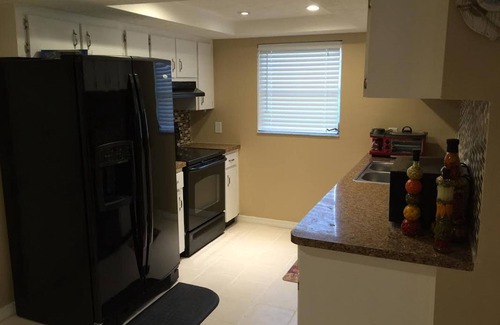 This beautiful haven has been fully renovated and updated including the outside! It has 3 bedrooms and 2 bathrooms with everything necessary to make special memories including a fully equipped kitchen with ice maker, large private heated screened in pool, hot tub, and an outdoor grill/kitchen- you will need to provide propane. The pool area has plenty of space for lounging. The outdoor area is very spacious and is completely enclosed with a privacy fence. The whole backyard and pool area has special night time lighting. The yard has extra outdoor lounging and a hammock. The front of the house has seating in porch area. There are 4 televisions in the home which include one large widescreen TV in the living room, one in the lower living area, and one in two of the three bedrooms. A DVD player is available with DVDs to choose from for your own special movie night. The master bedroom features a king size sleep number bed with a TempurPedic top to help you get that extra rest needed. The second bedroom has a queen bed. The 3rd bedroom has a queen bed. The couch in the living room also opens up into a queen bed. This home allows 8 people to rest comfortably. A washer and dryer is conveniently located in the garage. The garage also has room to park a car or suv. Also 4 bicycles, 2 beach chairs, and an umbrella is provided. Streaming TV and Wireless High Speed Internet access is provided so you can stay connected via your PC or smart device throughout the home. Special lighting is provided throughout the home to make your vacation extra special. The home is fully and beautifully furnished in a ‘beachy’ theme and comes with everything you need for a memorable vacation with your family. There is plenty of spacious comfortable living area both inside and outside. There is plenty of bedding and towels for 8 people. Just bring your swim suit and toothbrush! The home is very close to several beaches which are outlined in the welcome book. The closest beach is 5 miles away. Great shopping and dining can be found close by. Busch Gardens, Clearwater Beach and Tarpon Springs Sponge Docks are nearby. The Tampa Airport is 45 minutes away. Disney and Sea World are approximately 95 minutes away. You can view our video of the home in the video section. If this property is not available for your dates, check out our other properties. You can visit listings 515203, 712341, and 617711. We allow a maximum of two pets at our home. Each pet must me under 50lbs. Some breeds are not allowed therefore, your pet(s) will need to be approved before booking. (email weight and breed for approval)