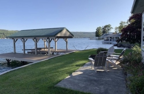 Deep water dock is great for swimming with great fishing right off the dock. Shale beach to ease into the crystal clear Keuka Lake water. Front yard is a great grassy area for kids to play games, or to kick back and take in the gorgeous view.