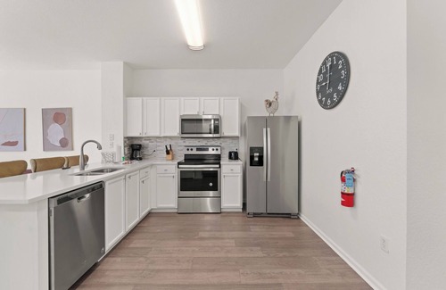 Additional conveniences include an in-unit washer and dryer, Smart TVs, and complimentary WiFi to keep everyone connected. With thoughtful touches, modern style, and fun theming for the kids (and kids at heart), this Windsor Hills townhome makes the ideal home base for your next Orlando vacation.