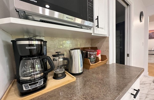 Our charming oasis, is like a private resort in the hustle and bustle of Metro Vancouver. This beautifully appointed house with central air-conditioning/heating, two bedrooms and one sofa-bed comfortably sleep up to 6 guests, making it a perfect retreat for family gatherings, or simply an extra spacious getaway. Huge free parking.