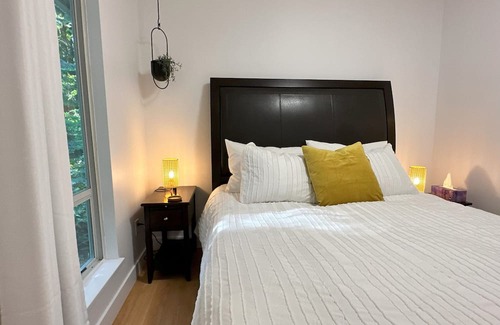 Nestled in Surrey, this 2-bedroom, 2-bathroom vacation home brings it all within your reach. Fans of nature and the outdoors will love being 9 minutes by car from Holland Park and 18 minutes from Peace Arch State Park. Make short work of the 4-minute drive to Bell Performing Arts Centre or the 3-minute drive to Guildford Golf and Country Club.