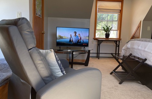 Bedroom & bath are on the second floor of the house. The stairs are just as you step in the front door. You will have a door to close behind you at the top of the stairs and another lockable door to the bedroom and bathroom. Hosts live on the first floor. The hot tub, pool, firepit and BBQ are available for guests use ( by permission only, rules the Owner is the only one encharge for open and close the hot tub, pool and hot tub close @9:30pm no exceptions) we are in 10 minutes walking to Albee Beach and a 6 min drive to downtown Wolfeboro. We are close to the Cotton Valley Railroad Trail and many attractions and restaurants
