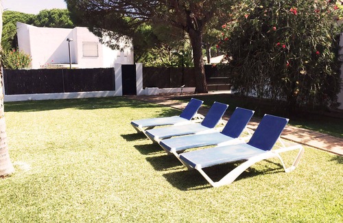 Located in the Roche urbanization, it is a great 12-seater villa. 6 rooms with spacious closets. Living room with fireplace. Spacious terrace. Well equipped kitchen, 2 combis and pantry. Large garden with sun and shade areas. Private pool and barbecue. 800 meters from the beach.