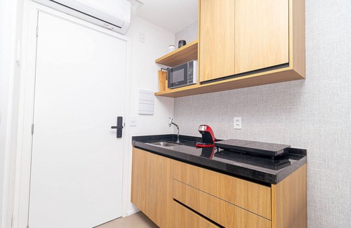 Studio with a super privileged location within the city and the center of Moema, it is close to the airport, park and numerous high-end shopping malls, in addition to having a complete and cozy space, with TV, large balcony, air conditioning, curtain with blackout and kitchen equipped with coffee maker and induction stove. Everything you need for a wonderful stay.