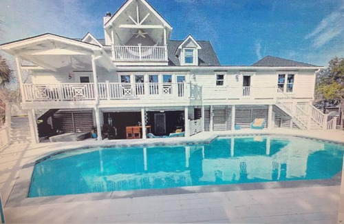 Pura Vida Beach House is an Ultimate Sullivan's Island Beach House. Just 175 steps to the beach, with 4 bedrooms, gourmet kitchen, stunning pool, covered pool side lanai and bar, Japanese soaking tub, covered outside entertainment areas and three levels of decks galore. Exquisitely furnished island style inside and out. Your family will never want to leave pristine Sullivan's after staying here.