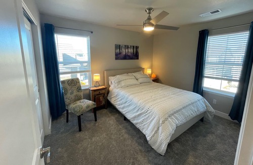 ABOUT THE HOME: Clean and inviting vacation home in the northwest Denver suburbs of Arvada. 3 bedrooms and 2 bathrooms upstairs. 1/2 bath and private office on the main floor. Open living room and kitchen. The primary bedroom currently has a regular queen mattress and bedroom but can be converted to be used for a children's room with up to 4 floor mattresses upon request. Please note: there is a photo showing the floor matts but there will be a regular bed set up when you arrive. You must request the kid's floor mat setup prior to your arrival. This bedroom also contains a large bathroom with shower and double sinks. The two additional bedrooms each have a queen bed in them. There is a bathroom across the hall from these two bedrooms. Beds are memory foam. Pillows are a combination of beauty rest and memory foam.