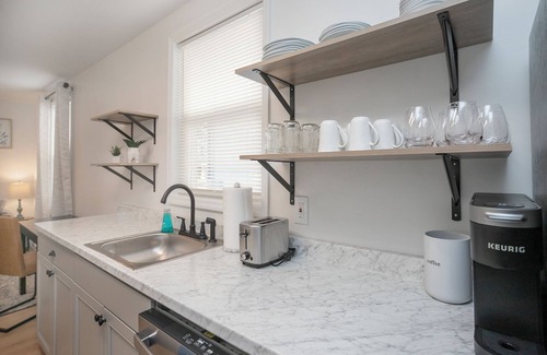 **30+ NIGHT STAYS ONLY** A newly renovated 2-bedroom cottage in quiet neighborhood! The natural light will warm your soul, and the decor will make you feel right at home. There's plenty of room to accommodate up to 4 people. The apartment has a full kitchen with all necessary utensils provided and a washer and dryer! Stay with professional hosts who have been doing this full time for 9 years!
