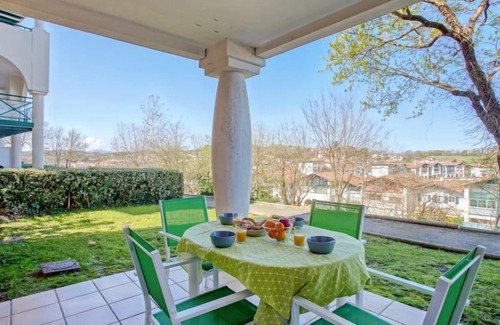 Ciboure 3 km from Saint Jean de Luz: Residence "Résidence Soko Eder". 500 m from the sea, 500 m from the beach. For shared use: swimming pool (seasonal availability: 01.Jun. - 30.Sep.). Children's playground. In the house: washing machine (for shared use, extra). Supermarket, restaurant, bakery, café 500 m, bus stop 180 m, railway station "Saint Jean de Luz" 3 km, sandy beach "Sokoa" 500 m. Golf course (18 hole) 2 km, surf school, sailing school 500 m. Nearby attractions: Golf de la Nivelle 2 km, Héliantal Thalassothérapie 2 km, Casino Joa Saint Jean de Luz 2 km. Well-known lakes can easily be reached: Lac de Saint Pée sur Nivelle 13 km. Hiking paths: La Rhune 10 km. The keys‘ handover takes place by the agency Interhome in Saint Jean de luz, 4 km.