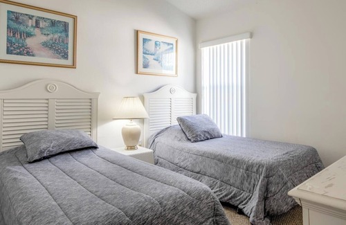 This 4-bedroom and 2.5-bathroom villa is situated at the beautiful Eagle Point, and it can sleep up to 8 guests. The spacious kitchen is equipped with a dishwasher, oven, stove, fridge, microwave, and a small breakfast table that seats up to 4 guests. The dining room is complete with a contemporary-style dining suite, which seats up to 6, and the large bay windows fill the dining room with warm, natural sunlight. The living room has 3 comfortable sofas along with a 28” TV and DVD player, for added entertainment. The living room’s large windows fill the room with natural sunlight during the day. There are four bedrooms: 1 master bedroom with a queen-sized bed, 1 bedroom with a queen-sized bed, and 2 bedrooms with 2 single (twin) beds each. The covered patio features a private pool (pool heat is unavailable) with patio furniture (chairs, dining table, and sun loungers). Wi-Fi is available throughout the house.