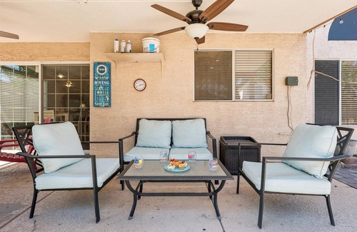Located in sunny South Phoenix, with easy access to the 101 freeway, Chandler Oasis puts you close to everything — yet feels like a private retreat. Whether you're sipping a glass of wine by the fire pit, watching the Sonoran sunset, or taking a morning dip in the aqua-blue heated pool, you'll find tranquility and beauty at every turn.