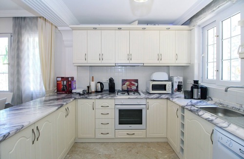 Thank you for your interest in our villa located in Yesiluzumlu, Fethiye. This spacious 4-bedroom, 5-bathroom villa features a private pool, large garden, fully equipped kitchen, and stunning views of the surrounding hills. It is ideal for families or groups seeking a peaceful retreat close to the coast.