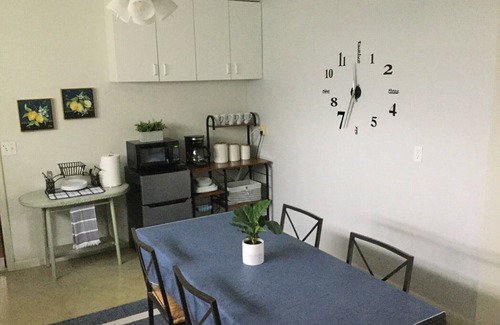 Full laundry room is also on the lower level as well as a giant family room with game table, TV, comfy seating . Take a book or leave a book in the small sharing library or play a board game or cards, or watch TV down here in the more casual lounging area.