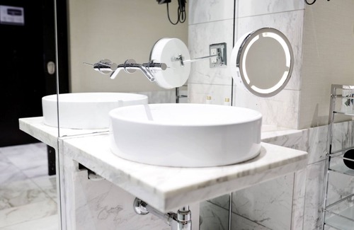 It's also ADA room has a roll-in shower. The water pressure coming from the overhead shower was incredible; it felt like standing under a waterfall.