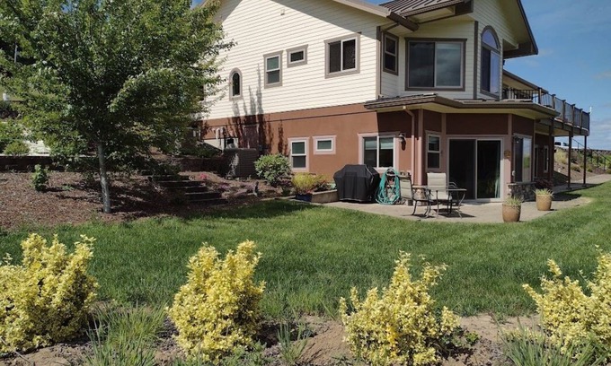 This recently-built home is on 3+ acres of open space with a view of the hills. The 1,100 sq. ft. apt. is directly downstairs from the host living area where you can get help and information as needed. It has a separate outdoor entrance and parking area. Access code will be given to you prior to check-in.