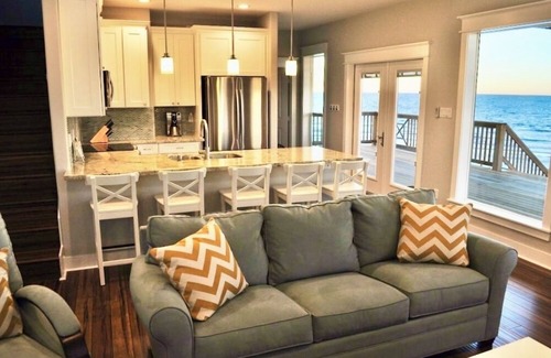 This is the closest you can get to the beach and waves! This charming home is right on the beach! Take in the massive ocean scene from the spacious front porches. Walls of windows across the front of the house make you a part of the vast ocean panorama. You don't even need to leave the house to be at the beach!