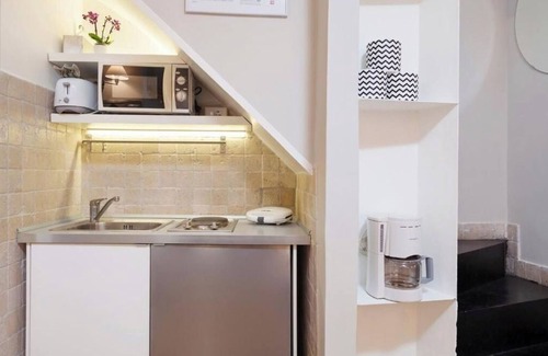 The Mirò apartment is located in the same building as the Renoir apartment, which in turn can accommodate up to 3 people: it is therefore perfect for a group of people who want to spend a holiday together, while still enjoying their privacy. This romantic Loft is equipped with all the comforts and is located in the charming Via Giulia, the heart of Roman antiques, and is perfect for those who want to reach all the main places of interest in the center of Rome: 10 minutes from St. Peter's Basilica, 3 minutes from Castel Sant'Angelo and 5 minutes from Piazza Navona and Campo de’Fiori. The Mirò apartment, with its antique floors and ceilings, is essential and elegant at the same time and enjoys a private entrance. On the ground floor it consists of a cosy living/dining room with a fully equipped kitchenette and equipped with a sofa bed for one person. On the mezzanine floor there is the double bedroom and the bathroom with shower.