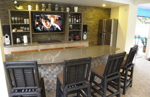 The tropical garden frames the villas private resort style 12 by 5 meter pool featuring a waterfall, swim up bar, Jacuzzi, swim jet and a spacious pool side lounge with plush couches and armchairs outdoor living at it’s best. Also there’s a granite and stone bar with Flat screen TV plus a large poolside BBQ area.