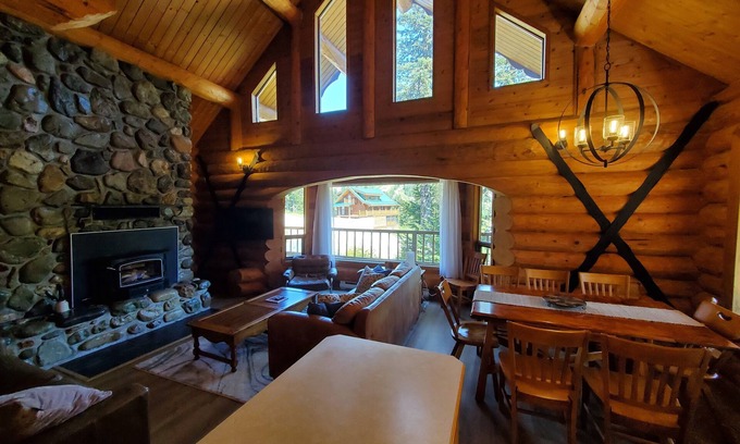 Our beautiful log home sleeps 10 people, with 3 private bedrooms, a kid-friendly loft and two full bathrooms. The cabin has all amenities for a relaxing stay, including wifi, netflix, disney channel, a firewood fireplace and a large BBQ. Whether you are looking to relax in front of a roaring wood fireplace after a day in the powder, or find a quiet retreat from the adventure of life itself, our cabin is the place to be.