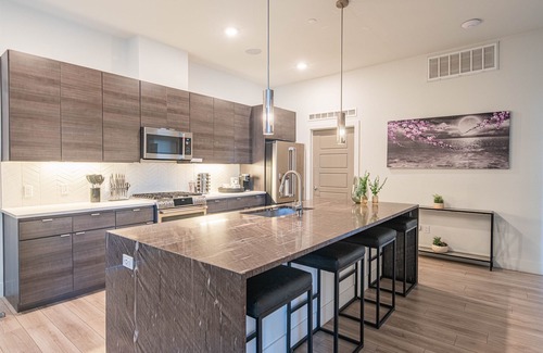 ➢ Quartz or granite countertops, an island, a breakfast bar, and plenty of seating