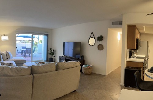 Discover Scottsdale's allure from our inviting condo, offering a patio, and access to a pool, gym, and hot tub. Ideal for traveling professionals or vacationers seeking convenience, it's nestled in a prime location for both relaxation and adventure. Steps away from dining and shopping, and near North Scottsdale and Old Town, enjoy endless activities. Your perfect desert retreat awaits.