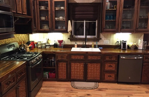 The Lodge is a rustic retreat perfect for a large family gathering, friends gathering for a memorable football weekend, holidays or any celebration. The Lodge is an elegantly decorated 2,600 square feet home with 4 bedrooms and two living rooms. The entire interior of the home is crafted of wood, providing a charming and cozy atmosphere. The house accommodates up to 10 people and has a fully equipped kitchen with a coffee maker and Keurig. The architecture highlights include a large open floor plan, chef's kitchen, screened in porch and large wrap-around porch. The porch gives you plenty of room to relax or entertain any time of the year. The main level is an open floor plan with a large living space. The upstairs of this home features two quiet, peaceful bedrooms with a shared full bath. The upstairs also includes a living space, perfect for watching TV, reading a book or area for kids to play. The downstairs includes a master bedroom with a private full bath and a guest bedroom with 2 sets of built-in twin sized bunkbeds. The bunkbed room is a favorite with children of all ages. The bunk room has an adjoining full bath. The property also features Direct TV, complimentary WIFI and washer/dryer for your convenience. A Weber charcoal grill.