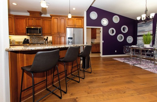 Upon entering your private villa, you'll find a modern style all around you. Three cozy bedrooms await you. Towels, blankets, washcloths, coffee, and a fully-stocked kitchen are found everywhere you need them. Your view overlooks the peaceful valley dotted with plant nurseries and dream homes.