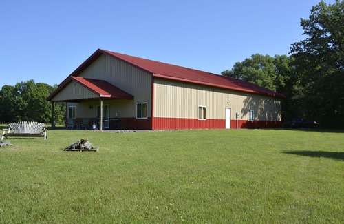 Indian Creek Ranch is a 121 ac piece of Paradise set in Northwestern Wisconsin complete with orchards, wildlife viewing food plots and a beautiful 1150 square foot "Barndominium"! What is a Barndominium you ask? Well, it is the newest trend in home building today. Indian Creek Ranch is a 45x90 building constructed of maintenance free steel. From the outside it simply looks like a well built barn but on the inside you will be awed by the beauty of the 4-season home. We have tongue and groove knotty pine finishes, in-floor heat, full kitchen with all appliances, 3 bedrooms and a game room loft with pool table, ping pong and darts for your group to enjoy. Many city dwellers who seek to escape the hustle and bustle are building these types of homes for the low maintenance and functionality. Our Barndominium is perfect for large groups as we can sleep up to 8(potentially more with arrangements). Sit in the great room by the gas fireplace and gaze out the sliding patio door window as deer come into the clover, soybeans and corn food plots planted for their use. This land is a highly managed wildlife paradise and all species of big and small game frequenting the property. Neil the owner, subscribes to Regenerative Farming techniques and has been converting the farm to an nearly 100% organic farm over the past few years. At night you can sit by the fire pit and enjoy smores with the kids or a adult beverage of your choice (wood is not provided but you may find some provide on site at times). As an added bonus we are only 2 miles from Coyland Shooting Preserve where you can enjoy all the shooting sports or hunt Pheasants. Indian Creek Ranch is an experience you will never forget!