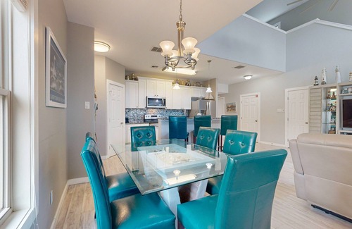 Welcome to Lighthouse Escape, a charming townhome located right off 11th Street. This delightful property offers a serene neighborhood view and is perfect for families looking to enjoy a relaxing beach getaway. With three spacious bedrooms and 2.5 bathrooms, this home comfortably accommodates up to 10 guests and is pet-friendly, allowing you to bring along up to two pets. The sleeping arrangements include one king bed and four queen beds, ensuring everyone has a comfortable place to rest.
