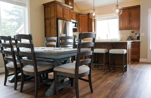 The owner's suite on the ground floor boasts a king-size bed with a 12" memory foam mattress, walk-in closet, 55” Smart TV, and en suite bathroom with a spacious walk-in shower. Upstairs, you'll find another king bedroom with 55” Smart TV, and a comfortable memory foam mattresses. The third bedroom has two full-size bunk beds, a 55" smart TV, and toys for our youngest guests. There is a full bathroom with bathtub upstairs as well.