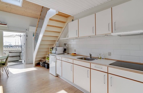 "Siunde" - 100m to the fjord", 3-room apartment 62 m2. Object suitable for 6 adults. Living room with TV and radio. 1 room with 1 double bed. Kitchen (dishwasher, 4 ceramic glass hob hotplates, microwave, freezer). Shower/WC. Upper floor: 1 room with 2 beds. 1 room with 1 x 2 bunk beds. Terrace 14 m2. Barbecue. Of the bay. Facilities: Internet (WiFi). Please note: non-smokers only. Bookings accepted for holiday purposes only. 787-182870