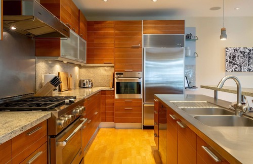 • Gourmet kitchen with Miele appliances, a De'Longhi Espresso Machine, and gas stove